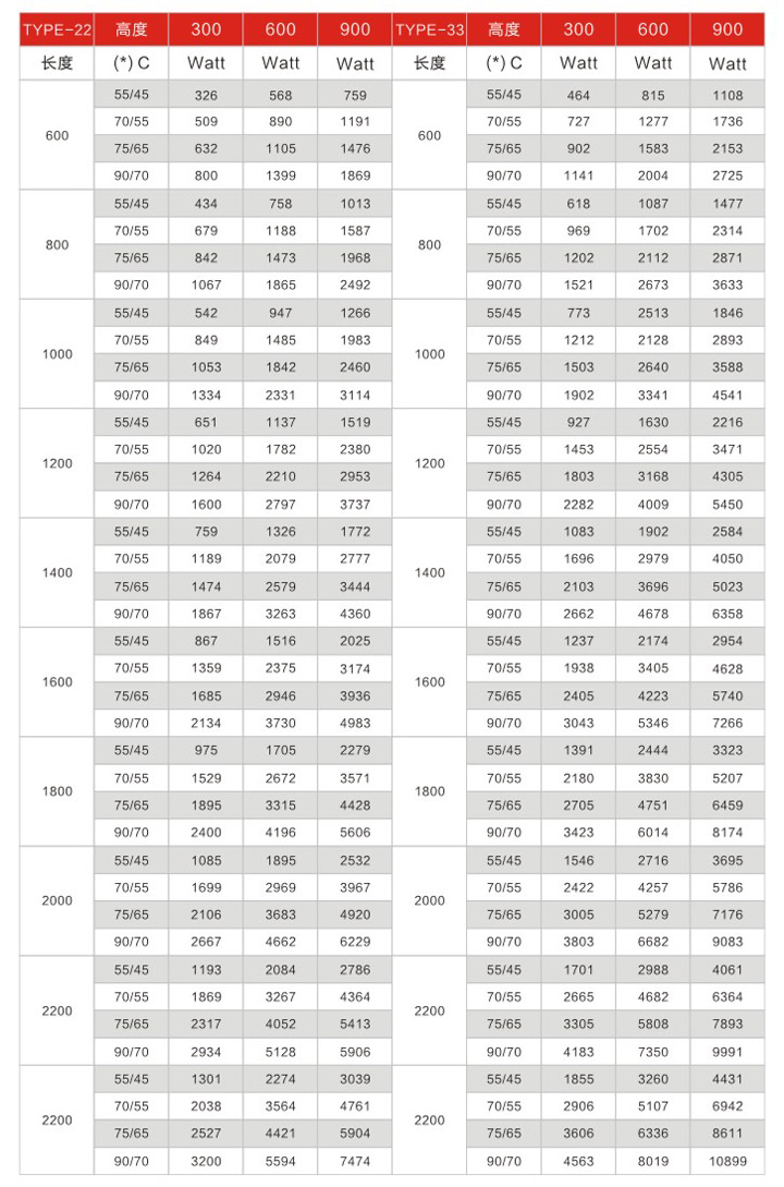 钢板散热器技术参数(22型-33型)